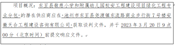 2、項目名稱:東至縣敬慈小學(xué)和附屬幼兒園校安工程建設(shè)項目綠化工程專業(yè)分包